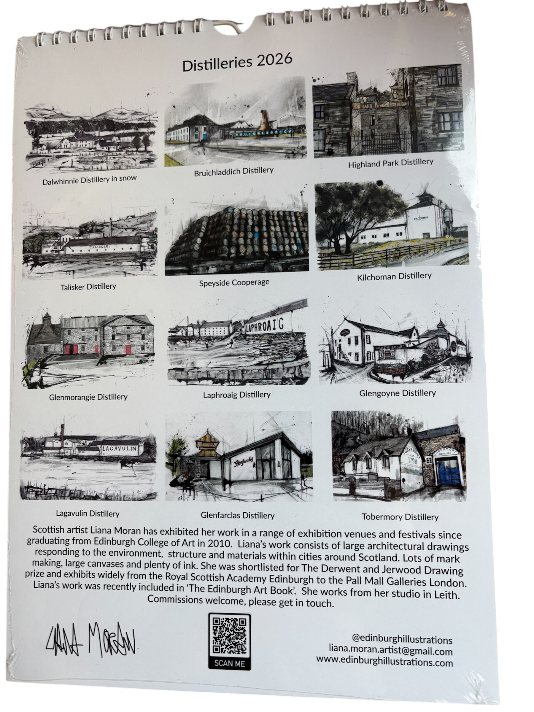 Distilleries of Scotland Calendar – A selection of drawings of Scottish Distilleries by Scottish artist Liana Moran